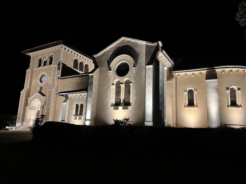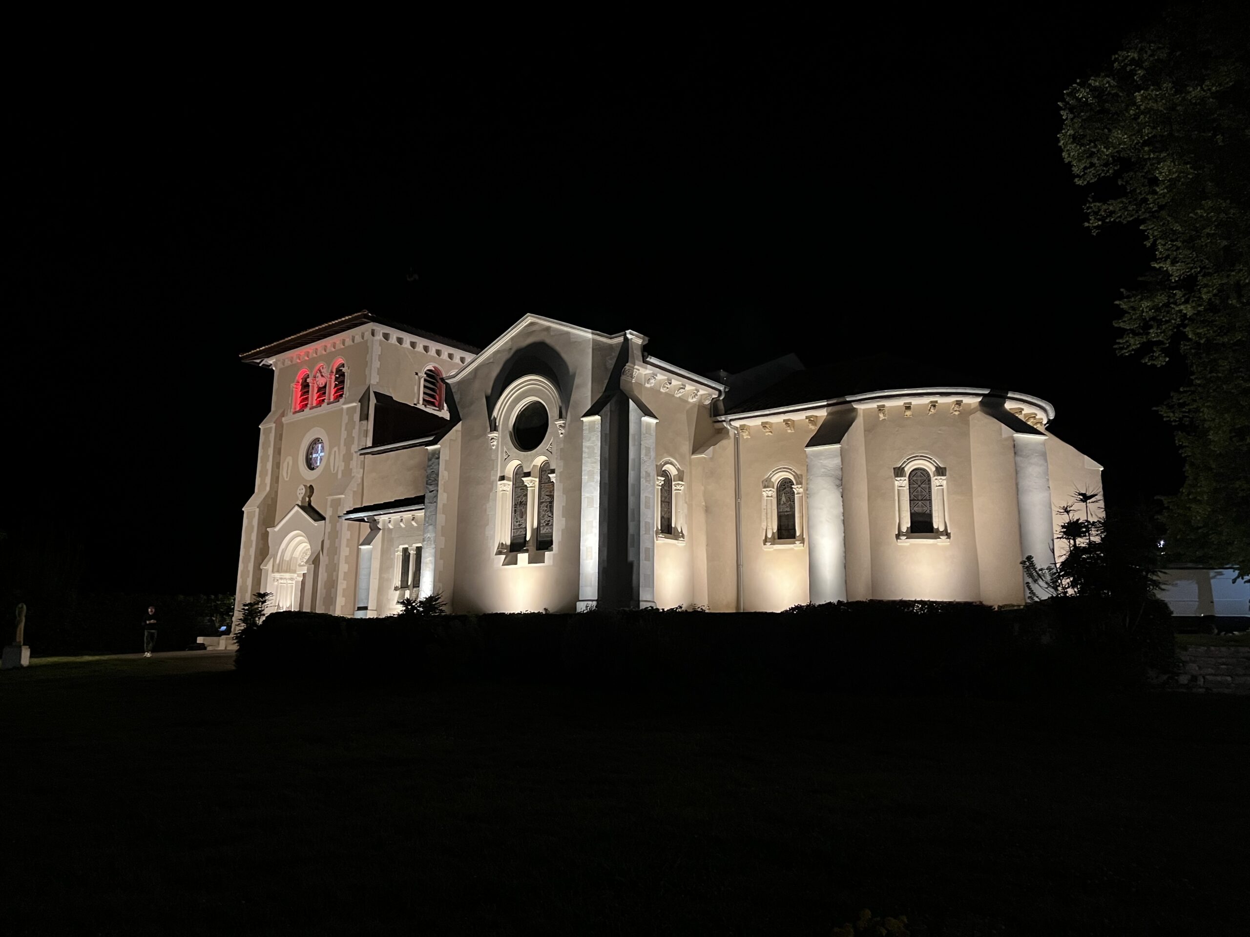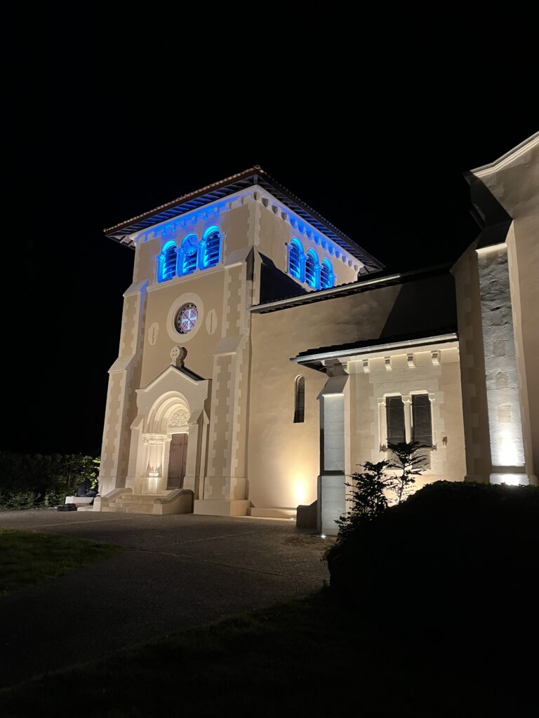 Il y a un peu plus de 9 mois, en juin 2025, a eu lieu l’inauguration des travaux de restauration des murs extérieurs, de la toiture et du clocher de l’église Saint Sever de Tosse. La municipalité n’a pas souhaité s’en arrêter là et elle a poursuivi son engagement au travers du remplacement de tout l’éclairage extérieur. Depuis le 16 avril dernier nous pouvons admirer, la nuit venue, le nouvel éclairage qui a été mis en place et qui met encore plus en valeur notre église. Les travaux ont été entièrement réalisés par le SYDEC (Syndical d’équipement des communes des Landes) qui a apporté près de 55% des subventions, le reste étant financé par la commune. Au total 34 sources lumineuses éclairent l’ensemble des façades. Le clocher étant lui illuminé par 12 réglettes pour lesquelles il nous nous est possible de modifier, quand nous le souhaitons, la couleur qui est diffusée.